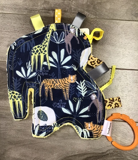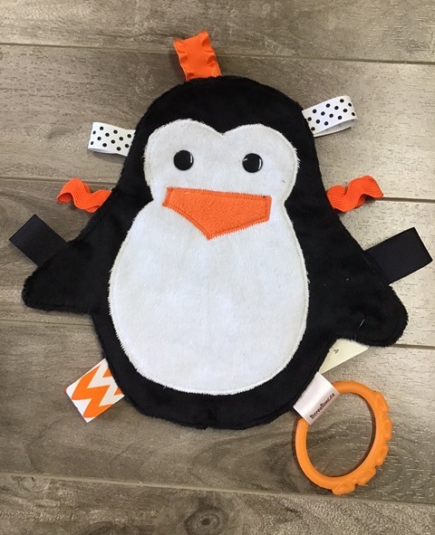 Super adorable baby toys! They LOVE to chew on it, play with it, and LOVE the crinkle noise. Lots of tags to grab and a teething ring as well. Pattern placement and tag colours on each Crinkler may be different than shown in the picture.